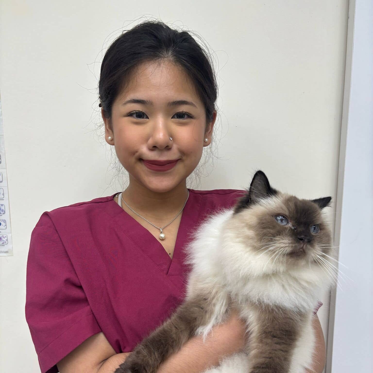 Dr Yan is a veterinarian who loves caring for animals and supporting the people who look after them. She enjoys all aspects of veterinary work, from keeping pets healthy to helping families through tougher moments.